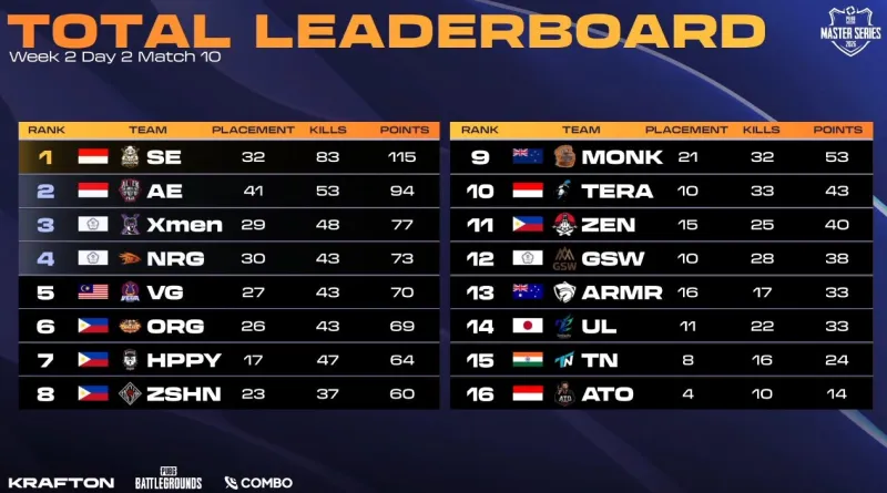 SE、AE位居一二,Xmen与NRG则排名三四